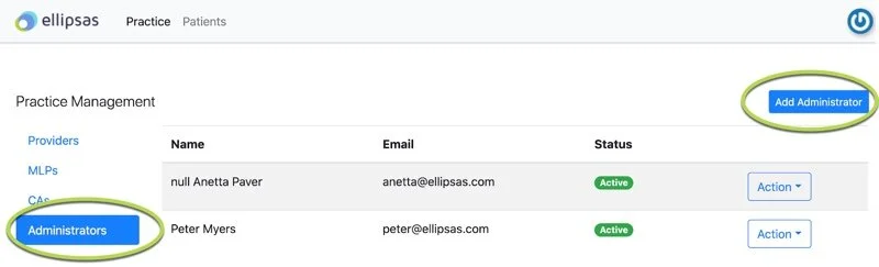 Only practice personnel who have been given Administrator-level access into the Ellipsas Provider Portal by Ellipsas personnel are able to create additional logins.